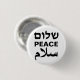 Peace Shalom Salaam svart och vit modern typografi-knapp. Fred på engelska, hebreiska och arabiska. Svart text på vit bakgrund.
