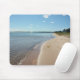 A peaceful stretch of shoreline along Big Traverse Bay on Lake Superior, where gentle waves meet soft sand under a bright blue sky. The curving beach and calm water capture the quiet, open beauty of Michigan’s Upper Peninsula.