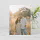 This wedding invitation features a serene outdoor scene with two individuals standing close together, bathed in warm golden hour light. The composition is balanced, with ample negative space and soft earthy tones of beige, light brown, and muted greens creating a peaceful atmosphere. The photographic art technique captures a candid moment, emphasizing the natural beauty of the setting and the relaxed attire of the subjects. The design conveys an intimate and nostalgic mood, perfect for celebrating love and companionship on your special day.