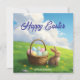 Peaceful Easter Spring Meadow Bunny & Egg Basket Julkort