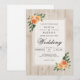 Peach Blommar Rustic Wood Bröllop Inbjudningar