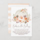 Den här mjuka och delikata bokar för baby-kortet har en vacker vattenfärgillustration av en söt elfenbenspumpa med arrangemang blommigt i höstbuquet