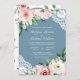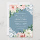 Peach Blommigt Snöre Dusty Blue QR Code Bröllop Inbjudningar