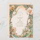 En romantisk utformning av Art nouveau bröllop med flytande persiko- och krämbeläggning, som är sammanvävd med botaniska scrollsar av mjuk grönt. Denna illustration av eleganten omger en vintage-stil-utformning med ett fantastiskt kurvor och en detaljerad perfekt för par som söker ett klassiskt men konstnärligt bröllop estetiskt, inspirerat av naturen och den antika skönheten.