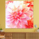 En harmonisk blandning av färg och elegans med stora, vibranta dahlia-blommor mot en mjuk persikobakgrund för rosa.