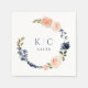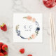 Möhippa Napkins med Orange, persiko- och Blue Blommigt Wand: Dessa unika blöjor av möhippa har rosa persikor och mörk blått botaniska löv och blommor som omger briden och groomens monogram. Ändra texten så att den blir din egen. Du kan också ändra texten färg och färg i bakgrunden!