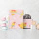 Min ursprungliga konst och design av en persikobelagd lutinolovebird med färgstarka fjädrar i bakgrunden.