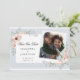 Med det här fotot sparar du datumet, och du får en vacker persikofärgad blommigt som är accentuerad med ett ljusdammigt blått gräns.