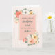Söt och omtänksamt hälsningskort för din systers födelsedag med persikofärgad rosa och vit vår blommor, rustiskt trä mönster och handskriven text från stil.