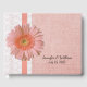 Rustic chic bröllop gäst bok i en persikokarlspets. Bilder av vit snöre, ett satinfärgat band tittar persikofärgad färgad och en stor persikofärgad daisy, dekorerar den lämnat framsidan av bok. Anpassa texten fält till din speciella dag.