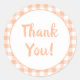 Skapa din egen gingham-design genom att ändra den ljusa orangens bakgrund till färg. Du kan också ändra bilden storlekt och orientering för den sömlösa kakan mönster. Matcha färg i textdesignen "tack" till bakgrunden färg om du vill. Persikofärgad och vit gingham tack vare dina bröllopsmärken.