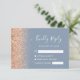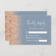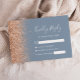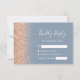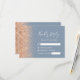 Den lämnat kant i denna elegant har ett modernt djurutrymmeskort i bröllop OSA ett persikofaux gräns. Anpassadet kombinerar vit handskrift och typsnitt på en dammig blå bakgrund. Baksidan har en dammig blå och persikofärgad utformning av glitter.