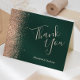 Den här eleganten är bröllop tack vare ditt kort en gräns av persikofaux glitter på en mörk som framträder i gröntens bakgrund. Anpassadet kombinerar ord "Tack" i handskriftsskriptet för blek och namnen för briden och trimmen med kursivt teckensnitt.