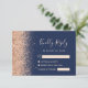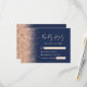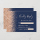 Den lämnat kant i denna elegant har ett modernt djurutrymmeskort i bröllop OSA ett persikofaux gräns. Anpassadet kombinerar handskrift och typsnitt med blek på en marin blå bakgrund. Den omvända sidan har en matchande marin blå och persikofärgad glitter-design.