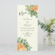 Peach & Ivory Peony & Ro Blommigt Bröllop Menu Meny