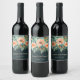 Peach Jade Teal Blommigt Vattenfärg Vinflaska Etikett