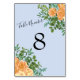 Peach Light Blue Bröllop Ro Blommigt Bordsnummer
