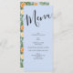 Peach Light Blue Peony & Ro Blommigt Bröllop Menu Meny