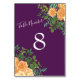 Peach Lila Bröllop Blommigt Ro Bordsnummer