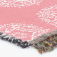 Den här vita mandala sitter på persikobakgrunden rosa. Färg är blommigt och ljus. Del av Jarn Mandala-samlingen.