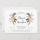 Chic inbjudningskort för möhippan har den brud som ska vara namn i kalligrafiskript för elegant, framtagen av persiko- och blommor, knoppar och grönska i rosa. Anpassa med information om möhippan under.