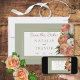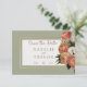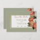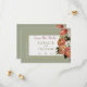 Den här vackra blommigten har en bouquet fylld med persikor, rosa och vita blommor på en dammig grönt med en bakgrund i guld ram. Det är en del av Peach Mimosa Blooms Blommigt Bröllop Suite-samlingen av kort som skapats av enbart Farmhouse Press.