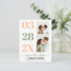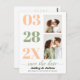 Persika och sänd grönt två foto Spara vykortet Datum. Datumet visas i persiko- och sadeltypografi i en grönt och två foton av paret. Uttrycket "Spara datumet" finns i skriptet stil typografi.