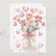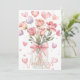 The peach lettering and five watercolor roses in pink and orange tones arranged in a jar with hearts around it bring a chic and modern Valentine style.