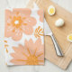 Varmpersika och orange mönster kökshandduk med snyggt tropiska blommor, botaniska motiv och retro vår sommarcharm för en glad naturinspirerad accent.