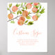 Peach-temat anpassningsbar för babydusch. Vattenfärgsillustration av persikor på träd gren.