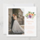 Tack vare det här kortet finns ett foto på framsidan och en levande bukett med persiko-, lila- och grönt-blommor. Den här blommigten med vattenfärger framhäver ditt budskap när du tackar dina gäster. Baksidan visar ditt andra foto för personlig beröring