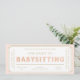 Den här babysittande presentkupongen har en klassisk rand-design. Rubriken "babysittande" är en bild som inte kan redigeras. All annan text är helt redigerbar. Om du vill göra en mer avancerad anpassning av den här designen väljer du bara knappen "Anpassa den" ovan.