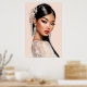 Peach Reverie is a striking editorial portrait designed to transform any wall into a gallery‑style showcase. With sleek black hair adorned by jeweled accents, shimmering eyeshadow, bold eyeliner, and vibrant crimson lips, this artwork radiates glamour and emotional resonance. The soft peach background adds warmth and balance, creating a modern yet timeless aesthetic.