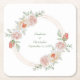Peach Ro Rosa Grönt Blommigt Guld Ram Bröllop Underlägg Papper Kvadrat