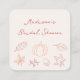 Whimsical handritade höstlövar, ekollon, bär och pumpa mot en blek sandbakgrund för denna inbjudan bifogad kortdesign, som också innehåller en QR-kod. Du kan använda detta för att lägga in presentlistelänken eller RSVP.