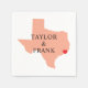 Persikoformen karta av delstaten Texas... färg är anpassadet att matcha din bröllop färg palett. Anpassa det röda hjärtat färg och flytta vektorbilden till bröllop på karta-formen. Anpassa den moderna eleganten stil för att skapa dina egna personligens bröllopsservetter.