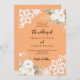 För en elegant och ett romantiskt bröllop. En persikobakgrund som dekoreras med vita blommigtar, ro och vita snöre. Anpassa och lägg till namn och information.