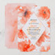 Anpassa den här contemporaryn och den moderna persiko-blommigtens bröllopsinbjudan med vattenfärgblommor och gör ett bestående intryck.