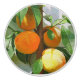 En söt konstnärlig vattenfärg på persikor som växer på träd.