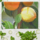 En söt konstnärlig vattenfärg på persikor som växer på träd.