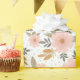 Den här eleganten och den feminina inslagningen pappra har en pulserande och charmerande uppsättning mjuka rosor med fintals och rik gyllene centrum, som är sammanflätade med kluster av små blommor och löv av grönt. Blommigten inslag är jämnt fördelad över designen och skapar ett sömlöst och harmoniskt mönster. Bakgrunden är adorberad med subtil polka dots, vilket ger en lekfull beröring till det övergripande utseendet. Perfekt för födelsedagar, babyduschar och andra presenter tillfälle!
