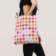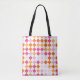 Den här bilden visningar en färgstark, upprepande diagonal mönster med alternerande färg - djup lila, magenta, orange, gult och oliv grönt - som ställs in mot en vit bakgrund. Rutorna är placerade i en diagonal, rutnätsliknande form som skapar en slående synlig påminnelse om klassisk harlequin eller vintage av textildesign