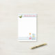 Här är en 4 "X6" Post-it®-anteckningsblock med den vita trion av luddiga vänner: en lila friock, en grönt anka och en gult chick. Du kan anpassa textområdet och bakgrunden färg.