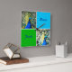 Peacock Art med Aqua och, Grönt Squares Ett foto av en färglös påk inspirerade den här akvblåblå och grönten med väggklocka. Se matcha mönster och heldragen färg som du vill välja mellan. celeste@khoncepts.com