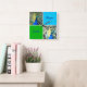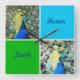 Peacock Art with Aqua and, Grönt Squares Fyrkantig Klocka