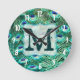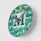 Peacock Bird Feather Monogram Initial Wall Clock Rund Klocka