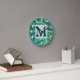 Peacock Bird Feather Teal Turcos Vintage Victorian Monogram Initial Wall Clock Personlig