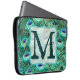 Peacock Bird Feather Teal Monogram 15-tums bärbar Laptop Sleeve