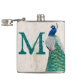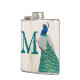 Peacock Bird Feather Teal Turcos Vintage Victorian Monogram Initial Whiskey Flask Personlig