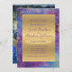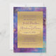 Peacock Blue Lila Abstrakt Guld Bröllop Inbjudningar